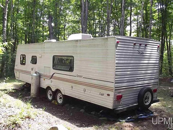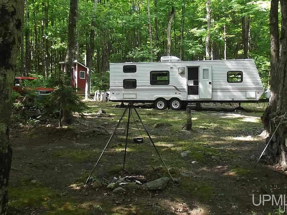 Let's see - 10 acres with a private road access, adjacent to Ottawa National Forest. Where does that get you? Great hunting, close to Hannah Webb Lake, Perch Lake, Sainte Kathryn Lake and numerous other lakes that can be found dotted throughout the National Forest. Enjoy a trek in the woods, wetting a line in any of the nearby lakes or rivers, hunting and four wheeling throughout Iron County from your base camp property. Property includes a 27 foot camper and new outhouse already on the property placed on a circle drive through the acreage. It's time to just unplug and play...up in the Ottawa!