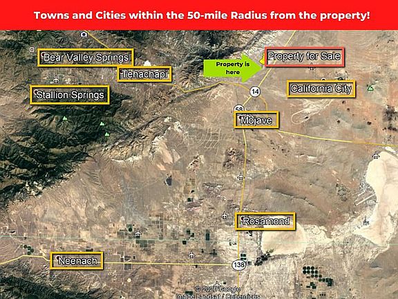 Settle peacefully in the vast desert landscape of Kern County, California once you own this 2.50-acre gem we have for sale here. This property is nestled north of Mojave overlooking Cache Peak to the northwest. Perfect for those who want to settle peacefully away from the city noise, this property is indeed a gem that won’t last. 24 min away from the property and you will reach Red Rock Canyon State Park, a great area to discover unique rock formations that are just gorgeous and breathtaking. Drive up to the nearest city of Tehapachi for great dining and shopping opportunities. Indeed this property is for you so call us now to learn more of the offer! Cash: 4,999Seller Financing: $299 down and $152 per month for 36 months. You may pay for a longer term to make your payment lower. Document fees waived. Call: 425-395-4527 PROPERTY DETAILS: Address: Mojave, CA 93501 APN: 225-362-18-00-1 County: Kern County State: California Size: 2.50 acre GPS Center: 35.146, -118.1291 GPS Corners: 35.1464, -118.1296 35.1464, -118.1284 35.1455, -118.1296 35.1455, -118.1285 Zoning: Residential Terrain type: Level Property use code: 0090- VAC ALL T ZONE INCL RST R1T