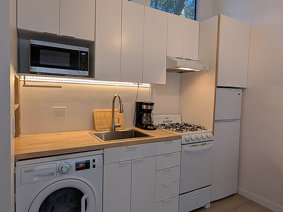 Kitchen and bath: Fully stocked with everything you need to cook actual meals, stove, oven, and fridge. Full bath with a shower. In unit washer/dryer.
