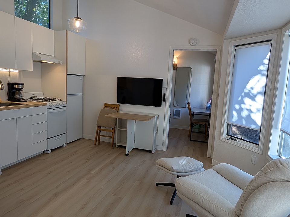 FULLY FURNISHED WITH UTILITIES INCLUDED. This fully detached cottage was intentionally designed for quiet, mid-term living. It offers true privacy, a full kitchen (no dishwasher), in-unit laundry, and a comfortable workspace in a calm residential setting. Located in walkable Multnomah Village, it combines neighborhood charm with easy access to downtown Portland, OHSU, and major employers ideal for professionals staying 1 to 3 months.