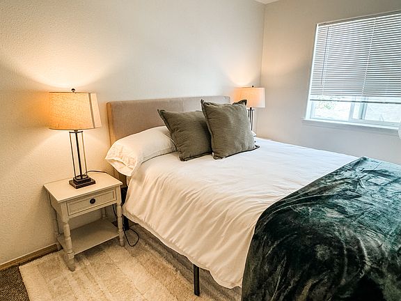 Discover your home away from home! 3-bed, 2.5 bath spacious home is perfect extended stay. Enjoy an open living concept, gas fireplace, and large kitchen. The master bedroom features an en-suite bath and walk-in closet. Work comfortably with a dedicated workspace. Pet friendly with a fully fenced backyard. Includes all utilities, WiFi, and full-sized washer and dryer. Ideal for families and professionals, with flexible lease terms.Spacious townhouse-style condo with modern amenities. Upon entering the main floor, youre greeted by an inviting open floor plan featuring a spacious living room with a gas fireplace, and smart TV. There is a covered patio area off the living room with access to the fully fenced backyard area. There is a half bathroom downstairs. Enjoy the open living concept with a stocked spacious fully stocked kitchen.The upstairs features a primary bedroom with a king size bed, smart TV, spacious en-suite bath with a bath tub, and walk-in closet. The other two bedrooms feature queen size beds. Work comfortably with a dedicated workspace. The full size washer/dryer is conveniently located upstairs as well.Smart tech includes, Ring Video doorbell and Smart thermostat. There is an attached single-car garage and two assigned parking spots, parking is a breeze, providing secure storage space for your vehicle or outdoor gear.Shopping and parks are just steps away!At Cedar and Porch Properties, we offer stylish, comfortable properties with all the amenities of a home with flexible stays for those encountering home repairs and/or relocation. We also work directly with insurance companies and policyholders in need of temporary housing.- Temporary housing- Extend stay as needed- Primary bedroom has a king size bed an en suite bath- Queen beds in the other two bedrooms- Dedicated Office Space- Pet friendly- Fenced backyard- Attached Garage- Modern fully stocked Kitchen- Dedicated work space- Washer/Dryer- High Speed WiFi- Smart TVContact