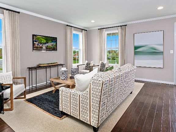 This beautifully appointed Oakton II townhome has everything to make this your new dream home. Upon entry, you'll find a spacious home office and full bathroom. The well-equipped, kitchen offers stainless steel appliances, stunning maple cabinetry, Quartz countertops, and an adjoining breakfast area. The spacious and inviting living room, complete with a conveniently placed powder room is located at the front of the home. The owner's suite offers a large walk-in closet and an en suite bathroom with dual sink vanity and seated shower. Two additional bedrooms, a full bath, linen closet and conveniently located laundry complete the upper level.