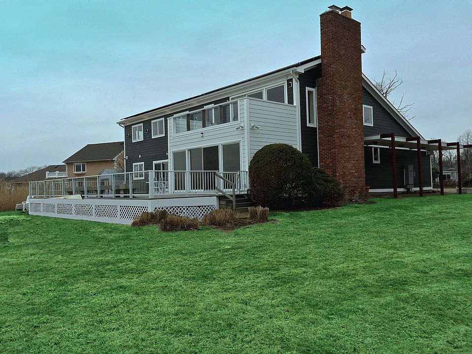 Built in 1975 and totally renovated in 2014 this contemporary house is situated on two lots totaling approximately one acre. This 3,454 square foot two story frame house is located on a quiet cup-de-sac in the Hewlett Neck area of Woodmere, New York. It contains a master bedroom with a brick fireplace and sliding glass doors leading to a balcony, five additional bedrooms, four and one half bathrooms, a large living room with a large brick fireplace and sliding glass doors leading to a spacious deck, an eat in chef's kitchen which is equipped with Wolf and Sub-Zero appliances, a family room and a two car garage. This home comes with numerous amenities: a 20 KW gas generator, 600 amp electrical service, CCTV system with six HD cameras, and remote access, a state of the art alarm system, LED lights, high efficiency multi zone gas heat system, central air, solar panels, a dock and a boat This .99 acre lot is located on a quiet col du sac on the water with it own private dock. http://youtu.be/uMcHUVcfGxc
