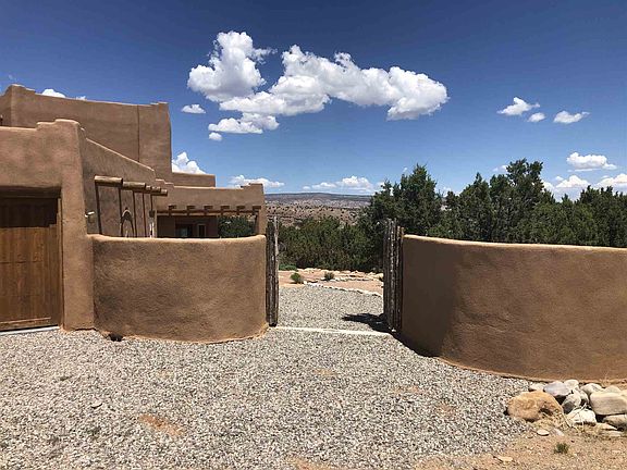 This is a very unique and special house with views of Lake Abiquiu and the lands of Ghost Ranch featured by Georgia O'Keeffe. This is a fifty-seven acre subdivsion with individual deeded lots. Off to the west magnificent views of Cerro Perdenal Mesa. This stand alone off grid house is two storied with a balcony and a deck. It is cooled and heated with double framed exterior walls and windows which makes it cool in the summer and warm in the winter. It also is heated by radiant heat in the floors and base board heaters in the upstairs. There are four heat zones and a separate domestic hot water heater on demand. The attached garage is one and a half with work and storage areas. This property has a laundry room/mud room with an separate Mechanical room for boiler and solar batteries. There are two wells in this community and water storage site with a private 250 gallon tank. Rain water is captured from roof tops into two 850 gallon storage tanks for gray water use. There is a underground water station and pump with private water meter system that also included. The electric system is solar and off grid with an automatic back up propane generator with a 500 gallon tank. Don't miss out on this little piece of heaven.