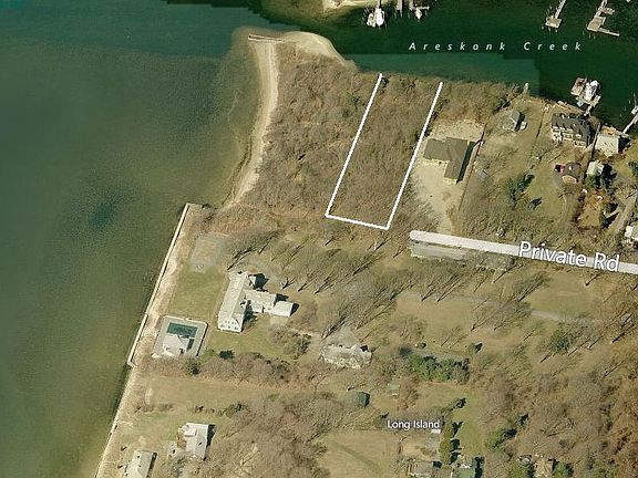 A one-of-a-kind secluded 1-acre waterfront lot on Private Road next to The Lindenmere Estate. Offering 116 feet of water frontage on Areskonk Creek and the ability to construct a substantial home in a building envelope in Flood Zone X (outside of the flood zone). Deepwater docking & amazing views of Moriches Bay. Room for swimming pool too.