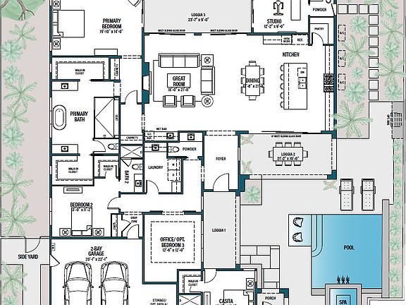 3,020-3,101 sq. ft.2-3 Bedrooms plus Casita3-4 full Baths and 2 half BathsStudio with half BathOffice / Opt Bedroom 3Dramatic fireplace in Great Room2 Car Garage with storage space / Opt Golf Cart Garage3 covered LoggiasLuxurious saltwater pool & spa with pebble finish and pool bathVolume ceilings in Great RoomBuilt-in custom barbeque