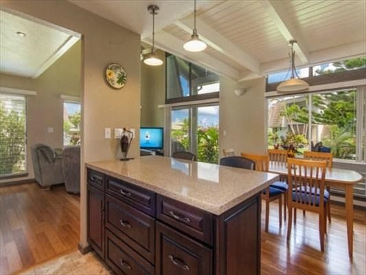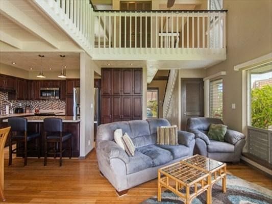 This beautifully and completely remodeled end unit, two story, town home is fresh and modern. The renovation includes a gourmet kitchen with rich dark cherry wood cabinets, light Quartz Silestone counter-tops for durability, glass tile back splash, stainless steel appliances, new lighting and fixtures throughout. The high-end and full-sized laundry washer and dryer are thoughtfully hidden away in matching cabinetry. Bathrooms and bedrooms have all been updated and freshly painted to match the fresh and modern look. Beautiful bamboo hardwood flooring provides a rich element to the decor. Extra square footage was achieved with the addition of an open loft upstairs, new storage area under the staircase, and an additional wall closet in the ma