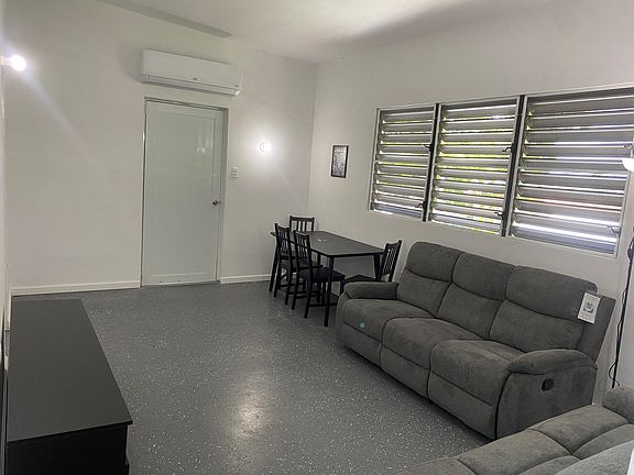 Newly remodeled and furnished 3 bed, 1 bath apartment located in El Tuque, Ponce. The residence has a large living room and dining area, fully equipped kitchen with gas range and stainless-steel appliances. There is an office with a desk and chair. Every bed room and office comes with a wall mounted fan. Laundry room is ready for your appliances. Step outside onto the large patio and enjoy the evening breeze. The rent includes heated water, electricity, and air. Life is good. One year lease. No smoking. Home furnished. Heated water and electricity included in rent.