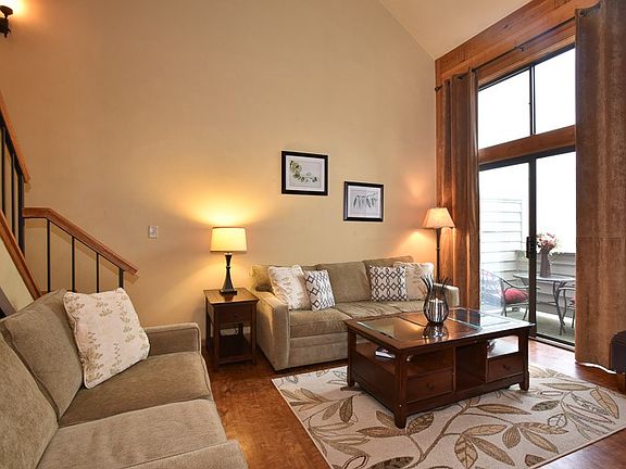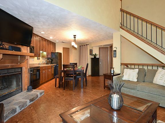 The best example of an updated home in the Resort. Use the keyless entry to enter the heated expanded foyer, which keeps boots warm. Kardean flooring in living area makes for low maintenance, while full-length cabinetry maximizes storage space. Top-of-the-line king-size bed and mattress in the master bedroom, while the loft offers a single-over-double bunkbed with trundle and sleeper sofa. Flat screens throughout. The kitchen table has an integrated leaf making plenty of room for family and friends. Full-size, front-loading washer and dryer. Comfortably sleep 8 guests. Located on trail.
