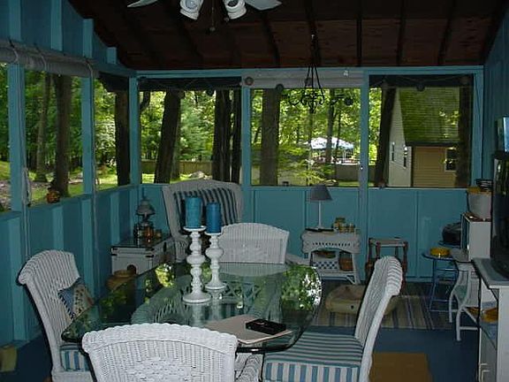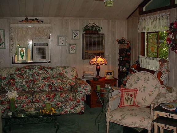 Rock away the evening on the covered front porch or the large screened back porch! This "Panorama Ranch" w/vaulted ceiling over the LR & EIK also has 2BRs, bath & has been lovingly maintained by one owner for the last 35yrs. On a quiet cul-de-sac, w/central water, propane heat & all the amenities of the community. You can move right in! Sq. ft. is approx.