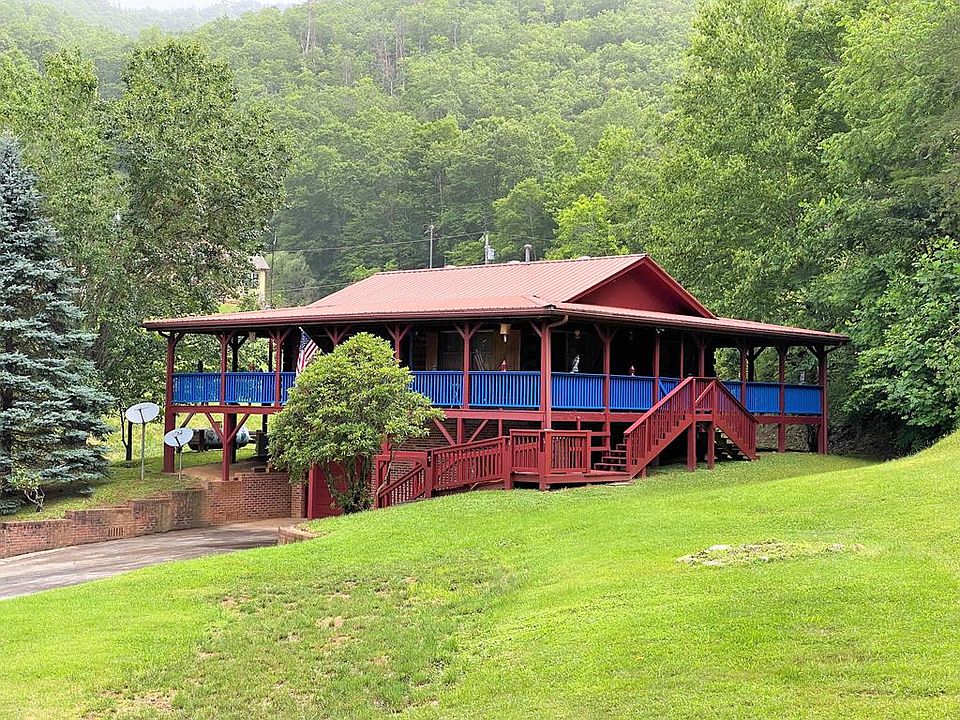 Where the black top ends you will find this True Log Home on 5.80 Beautiful acres. Home has an attractive Open Floor Plan with 2BD/1BA layout. Plenty of room as it offers 1,600+sq ft w/ a Gas Log Fireplace, a Full Basement w/ Heat & Air, single car garage & workshop. You also have a Hillside Bunk House for visitors or to enjoy in the evenings overlooking the waterfall across the road. End of a state paved road offers Easy Access & cultivates the most serene setting with Long range valley and mountain views from your 8' wrap-around covered porch. From the property you will enjoy the sounds of the creek/waterfall from across the road. The upper portion of the property has a branch with an Observation Bridge built over it to view the Falls, and an Open Yard around the house thats ideal for that garden spot. 8'X16' Deck in yard provides views down the valley to Shope Knob & the stars at night. Owners have done a beautiful job caring for & upgrading this house over the recent years. Home features: Generac Generator, Metal Roof, Newer C H&A 2017, New Well 2015, Tankless HW Heater, & Double-pane windows. Come see this Great Log Home in it's small quiet country community.