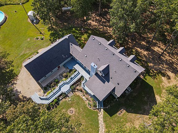 FINE QUALITY-BUILT 2-STORY 6,400+ SF COUNTRY HOME, PRIVATE, ON 83 ACRES IN THE OZARK HILLS IN SW MISSOURI, CONTAINING EVERYTHING NEEDED FOR SELF-SUFFICIENT LIVING: LIVE WATER, MULTIPLE BUILDINGS, QUIET & SECLUDED. Spacious Remodeled 1996 Home has 2x6 Construction, Large Covered Front Porch & Covered Back Deck. MAIN LEVEL: 2 Kitchens (one is Streamlined Modern Food Conserving Setup for Canning, Drying & Processing Food for self-sufficient Living (Commercial Stove/Oven, Commercial Stainless Steel Sink, Refrigerator, tons of Storage), Formal Dining Rm, Master Bdrm w/2 Walk-In Closets, Master Bath w/Jacuzzi & Walk-In Shower, Half Bath w/Combination Laundry Rm/Full Bath. UPPER LEVEL: 3 Bdrms, huge Jack & Jill Full Bath (Bath & Shower). LOWER LEVEL: (Full Basement) Large Family Rm, large Full Bath (Washer/Dryer Hookup), Reinforced Safe Rm/Storm Shelter w/Fresh Air Exchanger, & 2 large Storage Areas. Granite Countertops, beautiful Flooring, Custom Cabinetry, Wood-Burning Stove, 30' Deep Attached Garage; Bonus Rm (54.2'x24.3') over Garage & Harvest Kitchen, 3,200 SF Commercial Shop Bldg (80'x40') w/2 Half Baths, Sink, Central HVAC, Insulated, etc. BOTH THE HOME & THE COMMERCIAL BLDG HAVE THEIR OWN SEP. GENERATOR, WELL, SEPTIC & 1,000 GAL. PROPANE TANK! Seller has 2 Water 1,500 Gal. Holding Tanks & Jet Pump for Gravity-Fed Water System to lower Meadow for Animals, Pasture for Livestock & Horses (Pole Barn/Shop/Equipment 56.4'x30', Horse/Animal Barn 15'x4', Hay Barn 30'x24'x14', Woods for Hunting (5 Hunting Tree Stands), Walking & Horseback Riding Trails, Multiple Springs, Spring-Fed Creek, Small Waterfall, & 2nd Creek generated from the Neighbor's Spring-Fed Lake & also a small Cave. There is a 33'x33' Above-Ground Pool w/Decking, Outbuildings by House (Storage Shed 24'x12', Generator/Storage House, Well Pump House 24'x12'). 1 HR 45 MIN. TO BRANSON, 1.5 HRS TO SPRINGFIELD, 1 HR TO BULL SHOALS LAKE, 40 MIN. TO WEST PLAINS (Shopping, Medical/Healthcare, Restaurants, etc.).