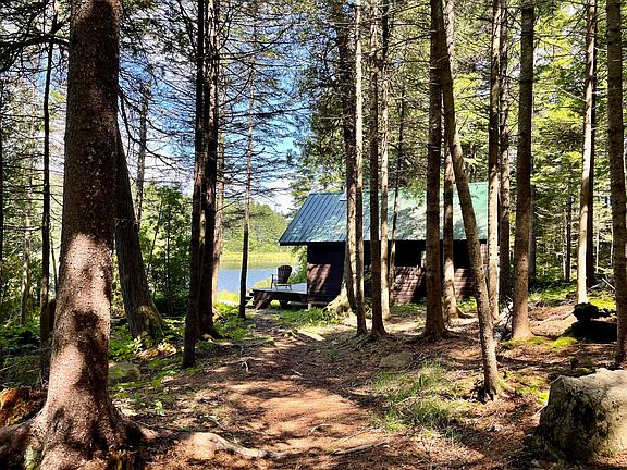 A true private Maine paradise forever preserved. This unique wilderness retreat is located on 17 acres surrounded by conservation lands owned by Appalachian Mountain Club. Timber frame home, timber frame garage and cabin sit alone on the shore of Mountain Brook Pond. Enjoy Camp Kirby's off the grid living with four season access on this native Brook trout fly fishing only great pond.