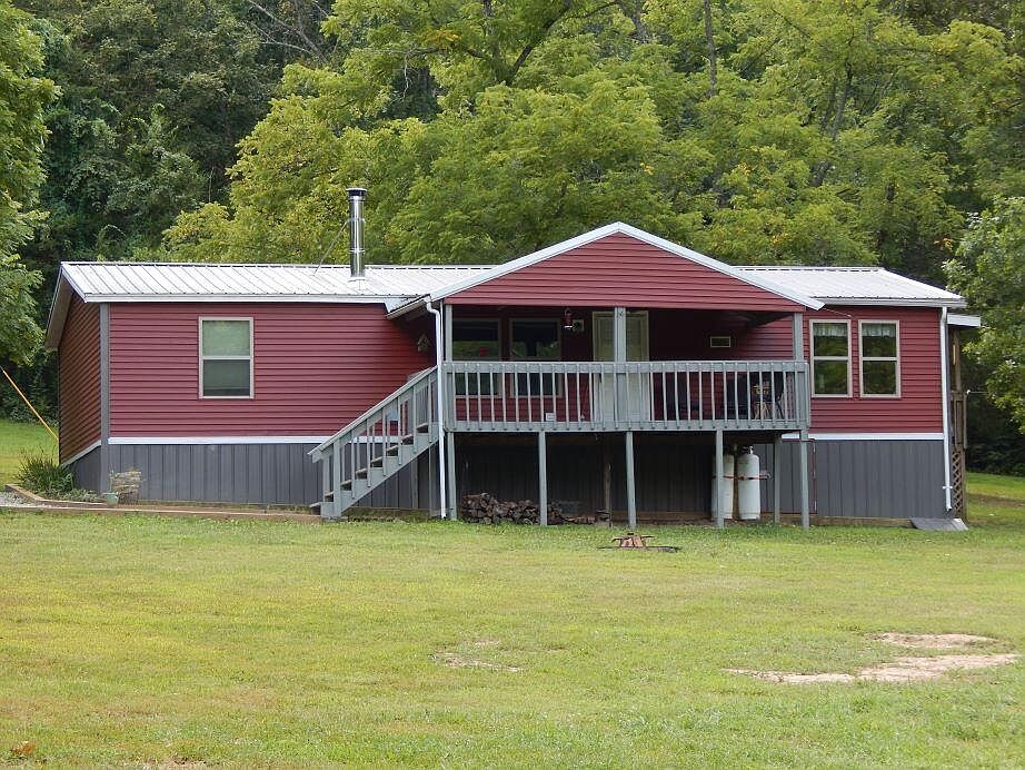 Why travel when you can live in the beauty and serenity of your own private retreat only 10 minutes from Ava, Missouri in the heart of the Ozarks? Live water, abundant deer, forest with groomed trails, complimented by a home finished out in knotty pine and a nice wood stove on a beautiful hearth giving it a lodge-like feel. You'll be able to watch deer regularly from the dining table or from the large, covered deck that overlooks the seasonal creek and pond. Your guests can have their own private accommodations in a nicely finished cabin with electricity, heat, and AC or bring their RV and plug in near the cabin site. There's lots of space for large or small gatherings in the large front yard with a firepit and the open camp/gathering area with a firepit near the cabin and RV outlet. You'll have plenty of storage for tools and equipment in the 10'x16' finished storage shed with double doors and electricity. If homesteading is your interest, you'll love the matching chicken coop and rabbit hutch, two complete beehives, tapping black walnut trees and a sap distiller, and plenty of open space for gardening. You can relax in the event of a power outage with the security of water from a year-round spring and wood heat. This property is perfect for homesteading, hosting gatherings, and outdoor recreation. Enjoy this scenic, peaceful setting for yourself, or share its beauty with guests, campers, or Airbnbers. There is so much potential in this amazing property located only 7.5 miles from town.