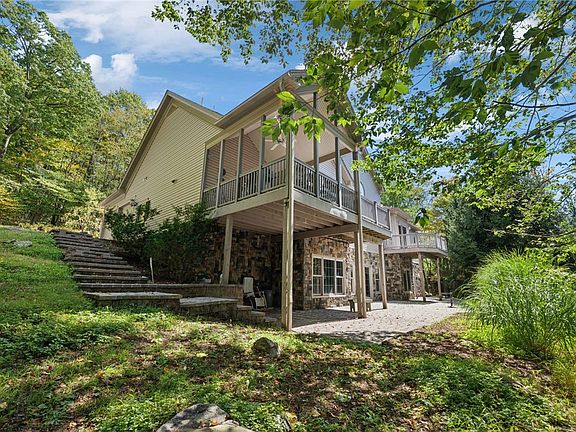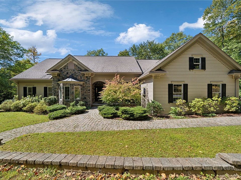 Peace, privacy, & luxury can be found at this home on 3.4 acres down a private road. Custom built in 2005, this stately ranch has it all. Step inside and be amazed by the cathedral ceiling in the living room, complete with a double-sided gas fireplace. The double trayed ceiling in the dining room is sure to impress. You'll love the oversized kitchen with a breakfast nook, center island, and walk-in pantry. The primary suite features access to a private balcony, & a spa-worthy bath, complete with a jet tub, 2 vanities, 2 walk-in closets, a shower, and a separate toilet room. 2 more bedrooms share a Jack-and-Jill bathroom. Stunning hardwood floors, detailed trim work, & high ceilings give this home a true "wow factor". As a bonus, the lower level is HUGE & ready for finishing! Potential for an in-law suite/additional living space. It features plumbing for a full bath, and doors that lead to a walk-out patio. 2 car garage. NEW furnace & hot water tank in the last 2 years. Home sweet home!