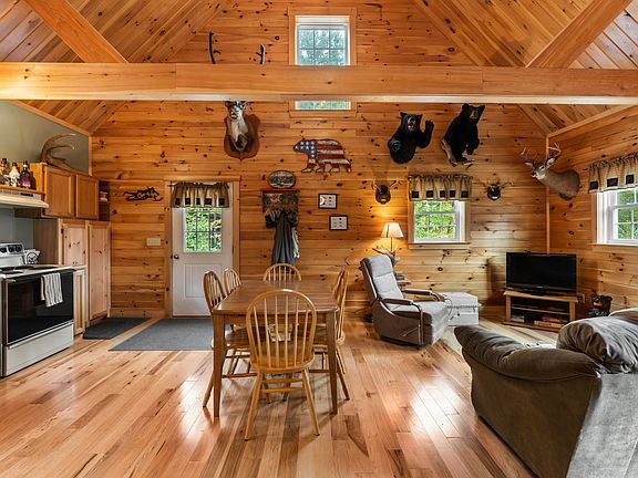 Looking for the perfect cabin in the woods? This charming retreat, set in the heart of prime hunting grounds and near the current snowmobile and ATV trail, is ideally located between Saddleback and Sugarloaf, offering four seasons of adventure! The cabin boasts an open kitchen that flows into a bright, airy living area, warmed by a cozy wood stove that adds to the rustic, welcoming atmosphere. With 2 comfortable bedrooms, 1 bath, and a loft featuring custom log railings, it's perfect for relaxation. Plus, the full walkout basement with double doors provides ample storage for all your gear, making this the perfect weekend getaway or year-round home!