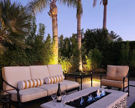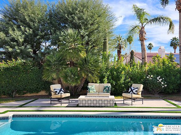 Luxuriate in the peace and quiet of your own private oasis in the highly coveted Tamarisk Heights neighborhood of Rancho Mirage - the "Playground of the Presidents". Recently redone including state of the art Lutron lighting and Sonos sound systems. Designer touches throughout. The large kitchen featuring a granite topped island, dual electric ovens, a separate built-in microwave and a gas cooktop opens to a breakfast nook and family room with an 85" TV and Sonos surround sound. The mirrored wet bar features a quartz countertop, sink and a separate beverage refrigerator. The spacious primary suite offers a 65" TV and Sonos soundbar, a walk-in closet and a two-sided fireplace which opens onto an over-sized, spa tub in the en-suite bath for ultimate relaxation. The guest bedrooms and den (optional 4th bedroom) all feature large screen, wall-mounted TV's. Dual zone A/C plus remote controlled ceiling fans throughout offer comfort and convenience. Turnkey furnished including linens and kitchenware. The Pebble-finish pool and spa w/Pentair automated and remote controls is reminiscent of the finest hotels. The patio is perfect for outdoor dining or relaxing in one of several seating areas including a tiled, gas firepit. Close to the famed Sunnylands estate. Enjoy Shopping on El Paseo, Sports and Entertainment at the Acrisure Arena, Gaming at the Agua Caliente Casino, Golfing at numerous nearby courses and, of course, visiting Palm Springs for its shops, restaurants, nightlife and architectural heritage. No pets or smoking permitted. Minimum 4-month lease preferred at $7,500/month plus utilities. Flexible terms negotiable for shorter lease durations and seasonal rentals at higher rates when available.