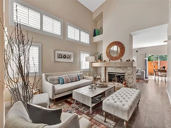 Drive down the Beautiful Tree Lined Streets, that bring you to an Exceptional 3 Bedroom, 2.5 Bath Townhome in the Highly sought After Sierra Verde Tract, Near Tijeras Creek Golf Course. This end unit location which includes a full size 2 car driveway, and 2 car Attached Garage! Enriched with an abundance of natural light, Dramatic entry opens to the formal living room with vaulted ceilings, Natural Stacked Stone Fireplace with beautiful Stained Wood Mantle and base, designer paint, New Grey/ brown laminate flooring (note that house has laminate flooring throughout not pictured). Remodeled Kitchen, Espresso Cabinets, Beautiful Quartz Counters, White Tile Backsplash. Updated espresso framed lighting. oversized Pantry, Large Kitchen Window looks out to Beautiful Private Patio area with Wood Fencing and Concrete Patio for easy care. Custom plantation shutters throughout. Upstairs features 2 secondary bedrooms with mirrored closet doors and plantation shutters, along with the primary suite that offers a large walk-in closet, and master bathroom featuring remodeled dual vanities, and relaxing tub. You have Access to the Association Pool, Spa, and BBQ area, and all of RSM amenities; Including 4 pools, Tennis Courts, Lake Walk, Beach Club, Volleyball courts, Parks, Skate Park, Dog Park, Hiking and Biking Trails, walking distance to Distinguished School Arroyo Visa K-8, Capo School District.