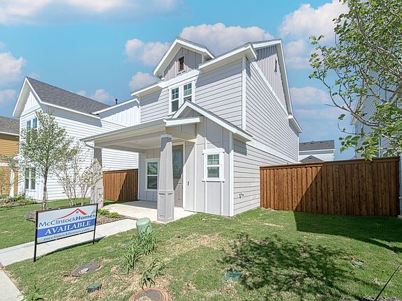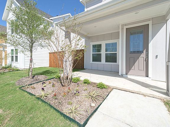 This craftsman-style home enjoys an open-plan concept, including a study downstairs.. A Large covered front porch greets you as you enter the cottage. The kitchen is equipped with stainless steel appliances, granite countertops, and subway backsplash. The huge pantry allows for extra storage space, too! Enjoy eating in the separate dining area or at the kitchen bar with a view of your private side yard. The upstairs master suite has two separate walk-in closets, dual vanities in the bath, and a separate shower and garden tub. Bedroom 2 has a walk-in closet and shares another full bath with a tub-shower combo with Bedroom 3. The utility room is smartly placed upstairs by the linen closet. Window blinds are included. HOA maintains the front yard for you!