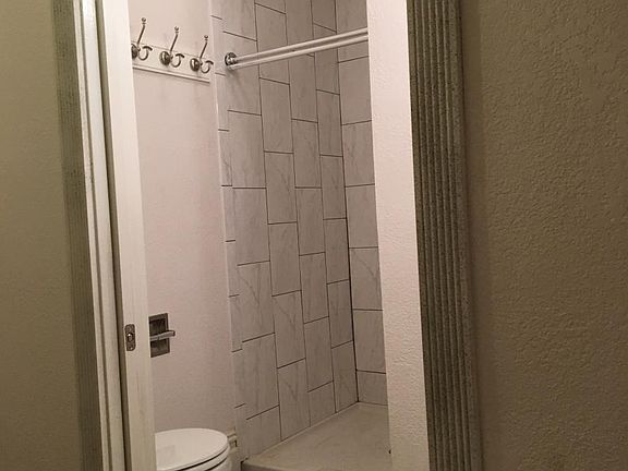 Washer/dryer included with unit as well as refrigerator. Tile floors. Shower provided. No tub available.