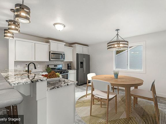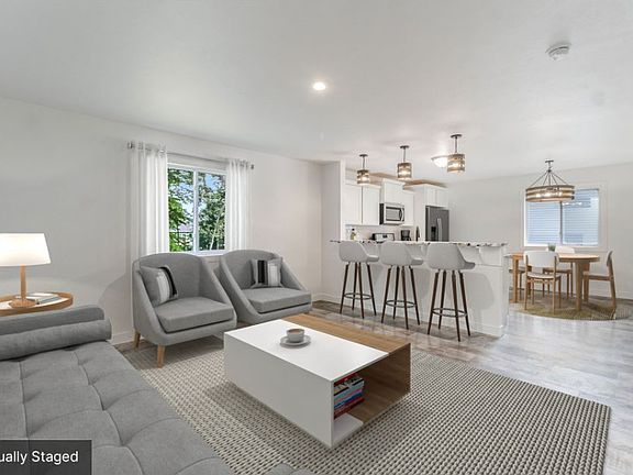 This great floorplan features an open layout and over 1,400 square feet of living space.. The main floor primary bedroom includes a private bath and walk in closet. The kitchen and eating nook are open to a large great room. The lower level features an additional recreation room/flex space along with 2 additional bedrooms plus a full bath.