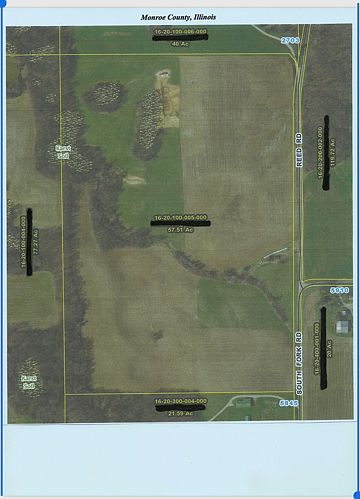 Located between Red Bud and Waterloo , 57.5 acres , approximately 50 tillable and 7 or 8 acres wooded , Small Pond, 4 wheeler trails ,Quiet and very Secluded. Great for Hunting !Call 618-381-5605 or Email mhesterberg@yahoo.com
