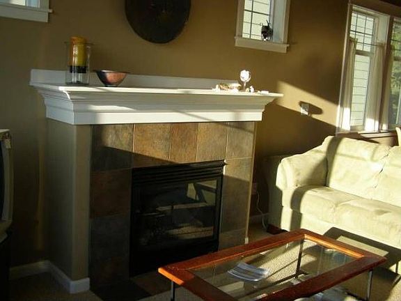 Inviting row style house backs to trees & offers suprisingly good ocean views.