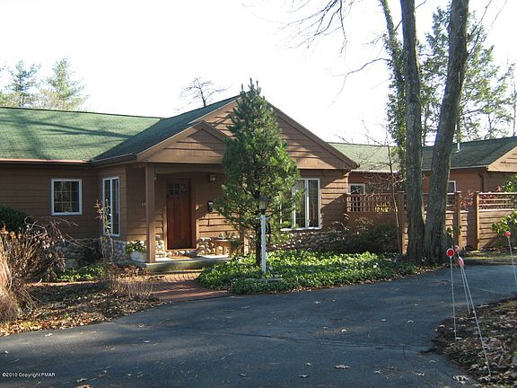Glenbrook Section of Stroud Twp., Large Arts & Crafts Style Stone and Cedar Executive Ranch, Private But About One Mile From Schools, Services, I-80, 3-4 Bedrooms, 3.5 Baths,Large Cedar Deck with Hot Spa Tub, Designer Kitchen, Nature Stone Fireplace With Built-In Bookshelves, Two Car Garage, Full Basement, Landscaped, And Much More! Shown By Appointment To Qualified Buyers Only Just Reduced!