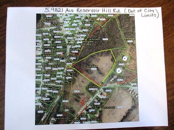 9.98 Acres atop Reservoir Hill Rd with Spectacular views overlooking the town and beautiful farms. City water and city sewer available at road. Underground utilities. 4 Acres located in city limits. 5.98 Acres are located out of the city limits. All 9.98 acres adjoin one another. Seller will not subdivide. Please do not walk the land without an agent being present. Part of the land surrounds a home which IS NOT part of the sale. Do not go around neighbor's home or park in his driveway. Park along the road.