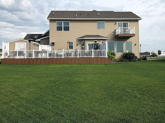 OVERLOOKS THE MINOT COUNTRY CLUB GOLF COURSE REDUCED $619,900 1804 Valley Bluffs Drive Pristine Custom 4 Bedroom, 4 Bath Home Beautiful view of the Minot Country Club Golf Course Main floor 1,304 sq ft: open concept; spacious nine foot ceilings; stone gas fire place; large windows overlooking valley and Gold Course; formal and informal dining areas; ½ bath and kitchen with double oven, granite counter tops; custom cabinets and walk-in pantry Second floor 1,202 sq ft: three bedrooms with walk-in closets and two full baths; nine foot ceilings; spacious master bedroom with private balcony, vaulted ceilings and attached bathroom with garden tub and tiled walk-in shower (all bathrooms have heated floors) Basement 1,050 sq ft: family room; 3/4 bath with tiled shower; large wet bar; spacious bedroom with walk-in closet; built-in ceiling surround sound speakers (7X2 system) and radiant heated floor Garage: Three stall; insulated walls and ceiling; floor drain and wired for electric heat Exterior: 16’ X 46’ maintenance free (TREX Composite Decking) deck with indoor/outdoor entertainment area; underground sprinkler system; private hot tub area; manicured lawn and beautiful view of the countryside with lots of wild life I am willing to pay Realtors 3% Commission