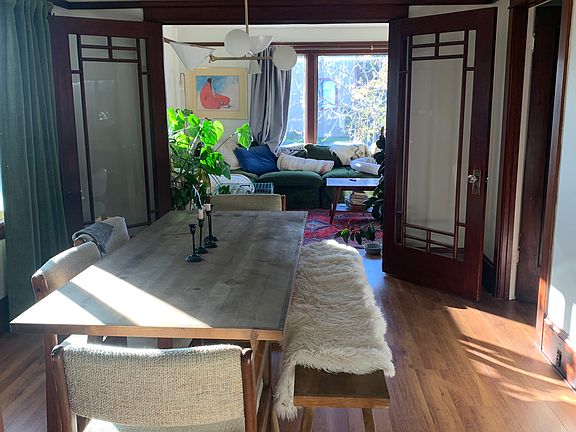 Separate dining room looks out onto the large bougainvillea, and the living room windows are filled with sun & a large tree. The front door opens into a mud room that provides space for shoes & coats and separation from the living room. The space feels green, peaceful and quiet.