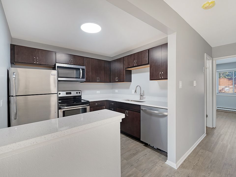 Cozy bedroomLarge windowsFully equipped kitchenEspresso designer cabinetsQuartz countertopsNew stainless steel appliancesModern lighting fixtures
