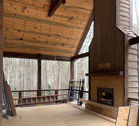 - Exterior: Porch, Wooded Lot, Private Location, Deck, Exterior Fireplace
