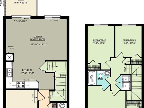 -1,310 Sq. Ft.-Covered Front Porch-3 Bedroom Two-Storey Townhome-9'-0" Ceiling Height on Main Floor, 8'-0" Ceiling Height on Second Floor-Granite or Quartz Countertops in Kitchen-Open Plan Kitchen and Living/Dining Room-Engineered Hardwood Flooring in Living/Dining Room, and Kitchen-Tile Flooring in Foyer, Powder Room, Main Bathroom, and Laundry Closet-Living/Dining Room opens to a 10'-0" x 10'-0" Rear Pressure Treated Wood Deck-Primary Bedroom with Walk-In Closet and Direct Access to Main Bathroom-Second Floor Laundry-Attached 9'-10" x 20'-8" Garage with inside entry-Central Air Conditioning