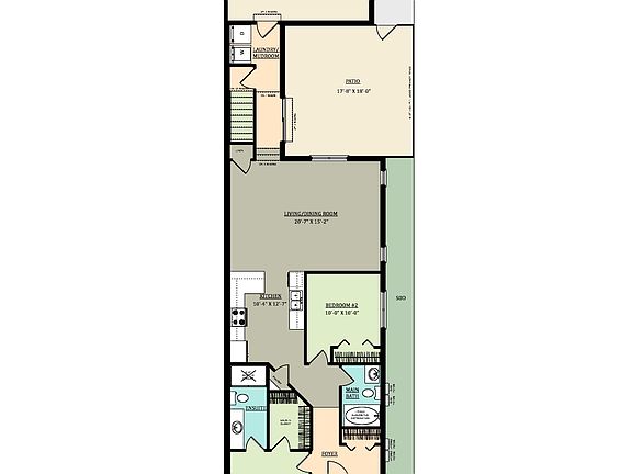 - 1,256 Sq. Ft.- Covered Front Porch- 2 Bedroom Bungalow Townhome- 9'-0" Ceiling Height with 11'-0" Ceiling Height in Primary Bedroom- Granite or Quartz Countertops in Kitchen- Large Open Kitchen featuring a Pantry- Engineered Hardwood Flooring in Living/Dining Room, Kitchen, and Hallway- Tile Flooring in Foyer, Primary Ensuite Bathroom, Main Bathroom, Mudroom, Rear Breezeway and Laundry Closet- Breezeway opens to a 17'-8" x 18'-0" Patio- Primary Bedroom with Walk-In Closet and 3-Piece Ensuite Bathroom- Main Floor Laundry Closet- Attached 19'-7" x 20'-0" Garage with inside entry- Central Air Conditioning