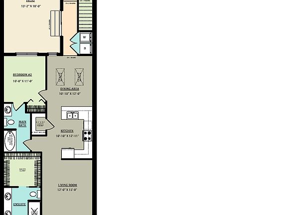 - 1,277 Sq. Ft.- Covered Front Porch- 2 Bedroom Bungalow Townhome- 9'-0" Ceiling Height with 11'-0" Ceiling Height in Primary Bedroom- Granite or Quartz Countertops in Kitchen- Large Open Kitchen featuring a Pantry and Breakfast Bar- Engineered Hardwood Flooring in Living Room, Dining Area, Kitchen, and Hallway- Tile Flooring in Foyer, Primary Ensuite Bathroom, Main Bathroom, Mudroom, Rear Breezeway and Laundry Closet- Breezeway opens to a 13'-2" x 18'-0" Patio- Primary Bedroom with Walk-In Closet and 4-Piece Ensuite Bathroom- Main Floor Laundry Closet- Attached 10'-0" x 20'-0" Garage with inside entry- Central Air Conditioning