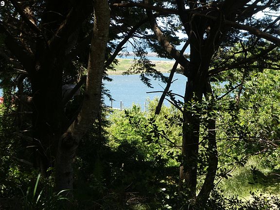 Beautiful corner lot with ocean,river and bay views. Two tiered lot would be perfect for a garage on the lower level with main level of home accessed from street above. Beautiful spruce trees could be trimmed or removed for view enhancement. No CCR's. Manufactured home allowed. City utilities available.
