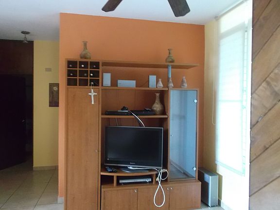 This is a nice apt with a nice price. Two rooms, One Bath. 9 ft ceiling. Big rooms, 12 ' x 12' with side to side closets. Nice kitchen, Laundry with washer and dryer . A/C in rooms and Fans . Includes furniture with SS appliances and TV, Dish . Futton and two Queen beds or if you prefer a Bunt Bend. Location is great, Just 2 minutes in car from Shack Beach. 3 min from Jobos Beach. 5 minutes from Hewlett Packard and Honeywell and 10 min. from Ramey and the airport. I am the owner and agent. No better deal that this one. Call o write me
