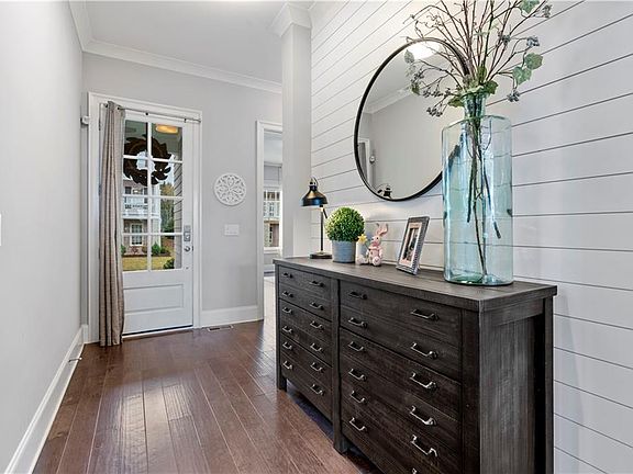 Looking for a home with attention to detail and upgrades galore? Designer light fixtures. Trim details including shiplap. Kitchen cabinets to the ceiling. Custom master closet. Wood shelving in pantry and appliance closet. Bluetooth surround. Looking for a home in a vibrant community filled with amenities? Swim. Tennis. Basketball Court. Playground. Multiple Parks. Ponds. Walking Trails. Looking for a home that feeds into top performing Forsyth County Schools and has dining, shopping and fitness options right in the community? If you answered yes, then this beautiful master on the main home is for you! The abundant natural light draws you in and the spacious open floor plan makes you want to stay. Second floor features an expansive bonus space. Terrace level has an additional flex space perfect for a home office or gym. Terrace level unfinished storage space could be converted to a home theater. Additional storage space in walk in attic. Seasonal view of Greens Pond is a perfect way to end your fall and winter evenings as the sun sets across the water. The charming covered and spacious front porch is the perfect place to start every day with a cup of coffee. 2 car garage and golf cart bay. Vickery is a one of a kind live, work, play community!