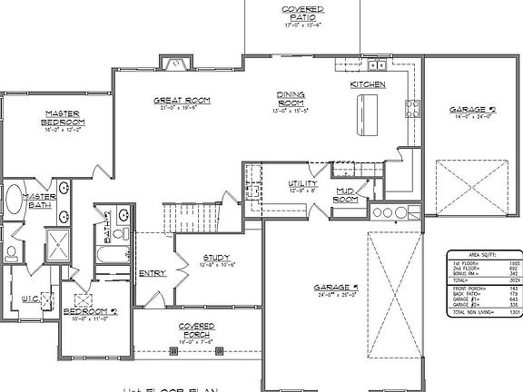 - Bath-Master, Bed-Master Main Level, Guest Room, Split Bedroom, Den/Office, Great Room, Rec/Bonus, Double Vanity, Breakfast Bar, Pantry, Kitchen Island, Number of Baths Main Level: 2, Number of Baths Upper Level: 1, Bonus Room Size: 12x24, Bonus Room Level: Upper