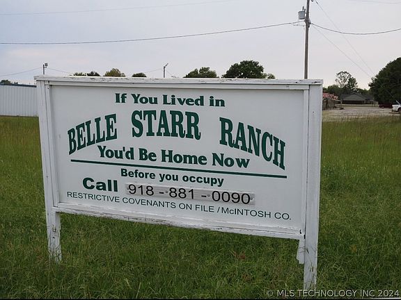 NICE LEVEL LAKE LOT IN BELLE STARR RANCH ADDITION READY FOR YOUR NEW LAKE HOME!!! Come enjoy Lake Eufaula with easy access to Belle Starr Marina and the additions local boat ramp. This addition also offers a club house & private fishing pond for the days you want to stay off the Lake. This property is close to Texanna rd. & HWY 69 for easy access to gas stations and grocery stores near by as this property is located between the city of Eufaula & Checotah. *No utilities on property, Rural water & electric available at the road.