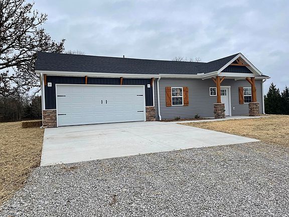 New house for sale in Ava Mo! Located in the country on 3 acres this ranch style home features 3 bedrooms, 2 bathrooms, 2 car garage, and an open floor plan for the kitchen/living/dining room. The kitchen features stainless steel appliances & nice white cabinets. Hardwood laminant flooring and tile throughout the home. Home was built in 2021 and will be completed by Mid-Jauary 2022. The property has paved road frontage and the land is sloped/gently rolling. Beautiful view with a long chatted driveway.