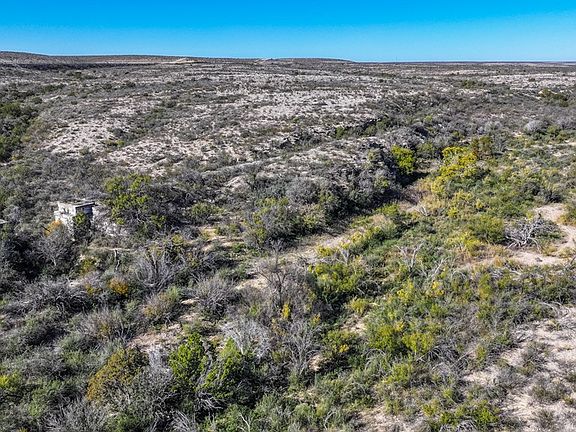 The Pumpville Ranch is a premier West Texas recreational and hunting property located in Pumpville, Texas, just north of U.S. Highway 90 on Ranch Road 1865. The property lies just 17 miles west of Langtry and 77 miles west of Del Rio, Texas. The ranch is centered around the head of Osman Canyon, featuring dramatic limestone bluffs, rolling hills, and multiple draws that provide excellent wildlife habitat and scenic views. Native grasses and shin oak, cedar, hackberry, and mesquite trees enhance both forage and cover. The property is supported by three water wells, including two solar-powered wells, supplying multiple troughs across the ranch. Improvements include a one-bedroom ranch home, a three-bedroom motel-style hunter's cabin, storage shed, skinning rack, and livestock working pens. Approximately 1,800 acres are high fenced for wildlife management. Wildlife includes whitetail deer, Rio Grande turkey, quail, dove, feral hogs, and aoudad.