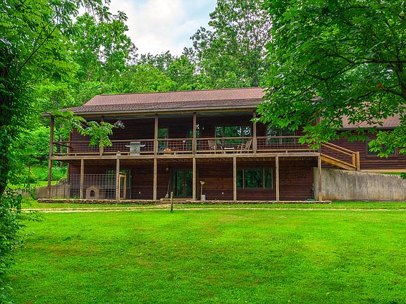 Nestled along Hunter Creek lies this beautiful custom built raised ranch style cabin. Beautiful covered front porch and a gorgeous view of Hunter Creek. Property includes 77.5 private acres with 50/50 mix of pasture to woods, great for your hunting, atv riding, or other outdoor activities. There is about 2500 ft of Hunter Creek winding through the property, with several great swimming and fishing holes. Located approximately 5 miles form Ava town square, just off blacktop, this is a must see property. Schedule a private showing and enjoy nature at it's best.