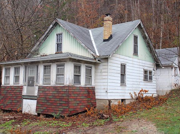 This property is near the Jug. Boarders Middle Island Creek. Not far from the Jug Wild Life Management for hunting. Houses are in very poor condition. Large block garage in good condition. Could be made into a camp.