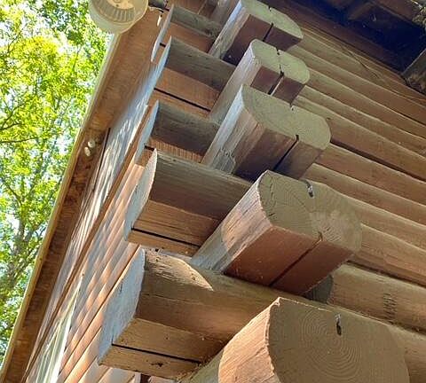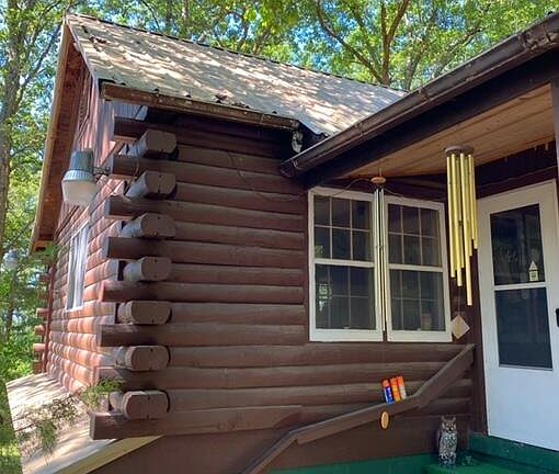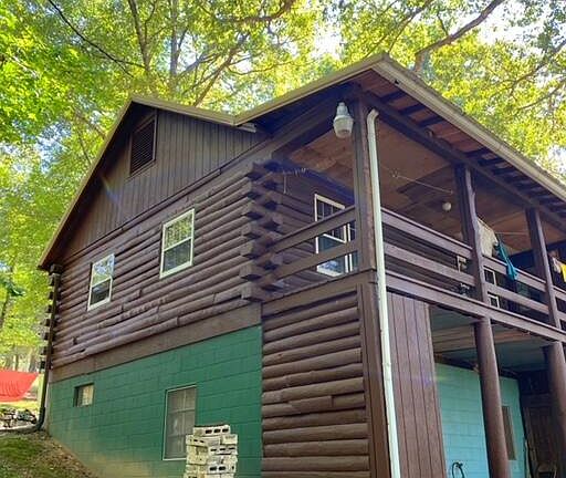 Log cabin, 8'' pine logs from Mena, Arkansas. Located on Wayton Mountain, near the Ozark National Forest and Alum Cove Natural Bridge. Two fenced- in acres with area for a large garden. Only two miles off Highway 326 on a well maintained county gravel road. New metal roof. Deer/Wayton rural water system. Log walls inside with easily cleaned linoleum floors. Propane fueled brick fireplace. Two bedrooms and one and one half baths.