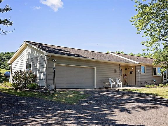 Must see 3 bedroom ranch home is 5 miles from Mondovi and 15 from EC! This well maintained country home has a ton to offer! Besides the great views and large yard; the first shed that has the workshop is 30x40 and cement floor, part is heated. Other shed is 28x44 with dirt floor and electricity. Plenty of room for your toys! Other in rooms is the newly remodeled Entryway. LP tank by house is rented. LP tank below Workshop is Owned.