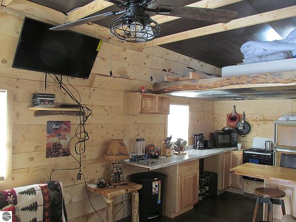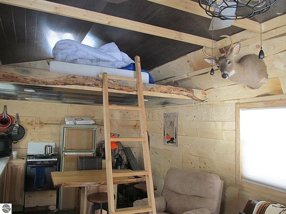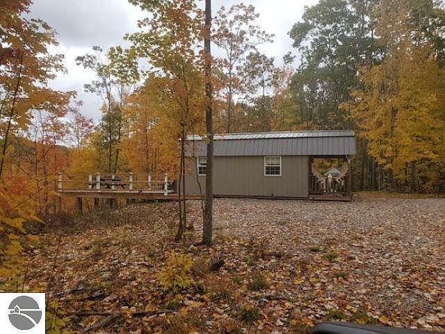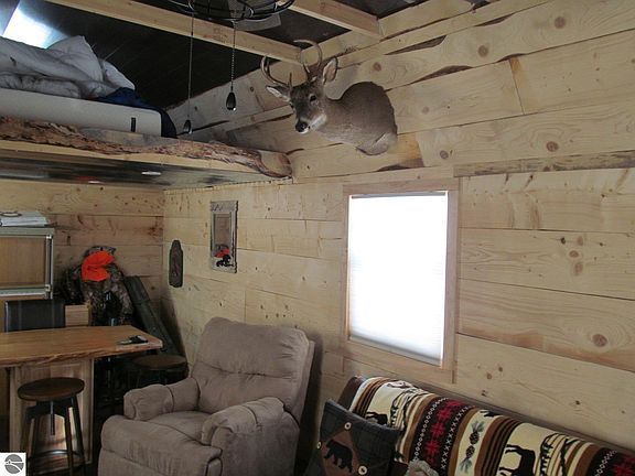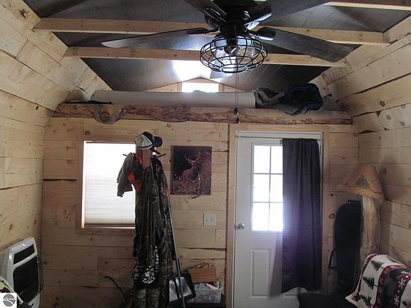 Excellent hunting camp! Or, simply a peaceful retreat! 10 Beautifully wooded acres with a cozy Amish built cabin (just 2 years old), with a covered porch on the front and the brand new large deck on the back overlooking a fantastic view of the wooded valley and plenty of wildlife (deer, turkey, bear, more!) This awesome cabin has many amenities!! There are 2 loft sleeping areas, it is professionally wired for a generator, the inner walls are lined with milled wood, the floors & ceiling are hardwood, it is totally insulated including the ceiling and the floors, and it has a metal roof! All the furnishings stay. The refrigerator and stove are propane. Also included is a small storage shed, AND the Amish built, cedar, octagon hunting blind, with a metal roof as well!! Fabulous property for hunting, serenity seekers, snowmobiling, hiking! And close to 100's of acres of state land, several lakes for fishing, swimming and boating, (in Cadillac and Lake City!)...and...just a 1 hour drive to beautiful Lake Michigan! (There is a well with a hand pump located a short distance from the cabin.)