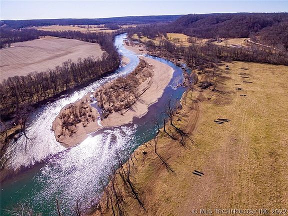 240 +/- acres approx 60 +/- acres in flood zone. Property fronts Illinois River, 80 acres on top is not in flood zone. 2 springs, almost all open land loaded with deer and turkey, good cattle improvements. Will not split the land, must be bought all together. There is a 2 bedroom, 2 bath home on property that is currently rented.