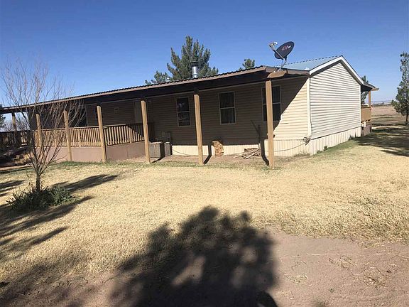 Country Living at its BEST Great Location with 5 acres. domestic well. sprinkler system for pasture irrigation. Well maintained manufactured home features a spacious master suite, large open Living room w/fireplace, beautiful covered porches front and rear. Pipe fencing and corrals with a 28x72 Barn/tack room and stalls. View the beautiful Sacramento Mountains from your porch..